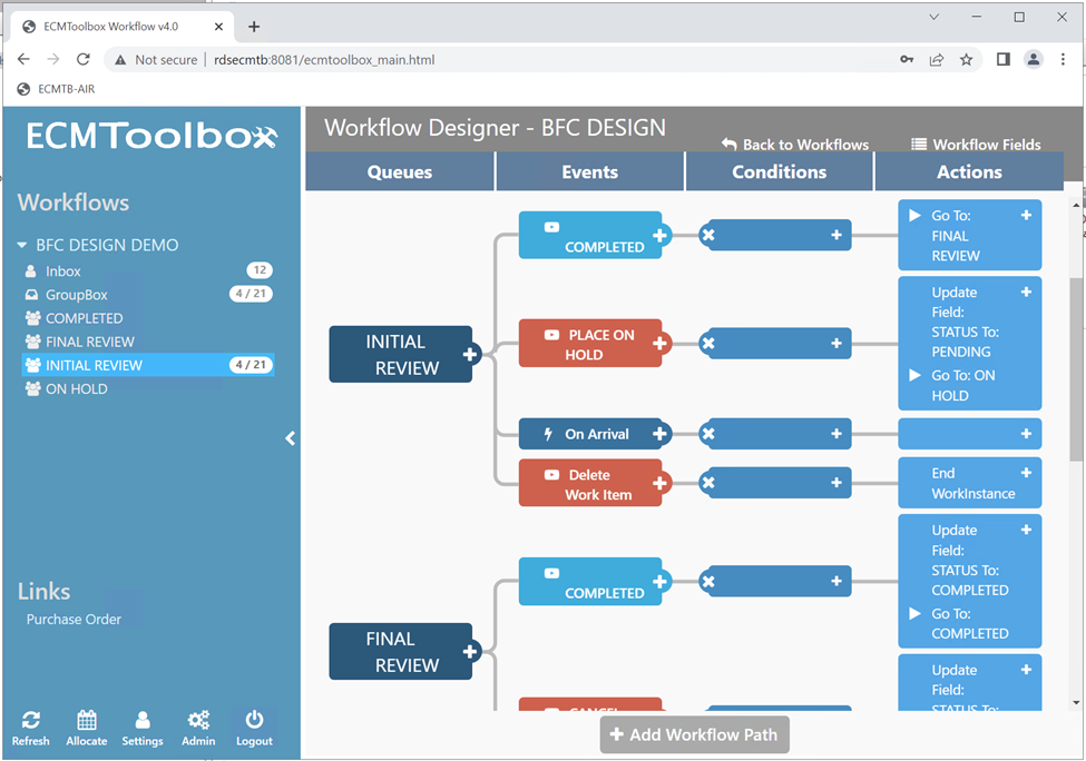 9. To remove the "Delete Work Item" button from the workflow, open the workflow in ECM Toolbox Workflow Designer.